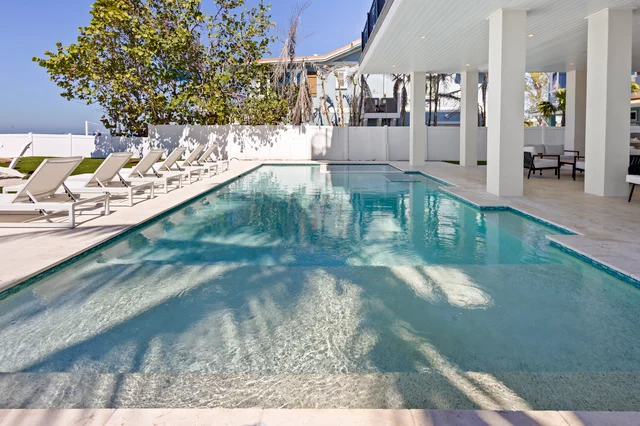 Wander Bradenton Beach Gulfront is a beachfront estate with direct private beach access, featuring a resort-style pool and spa with tanning deck, rooftop deck with panoramic Gulf views, covered outdoor lounge with grill and dining space, elevator access, outdoor ping pong, and exclusive amenities including a golf cart, beach bikes, and premium beach gear for effortless coastal living.