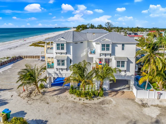 Wander Bradenton Beach Palms is a striking five-bedroom beachfront estate set directly on the white sands of Anna Maria Island.