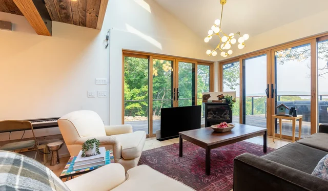 Wander Catskills Vista, a modern Catskills hideaway perched above the treetops with sweeping views in every direction.