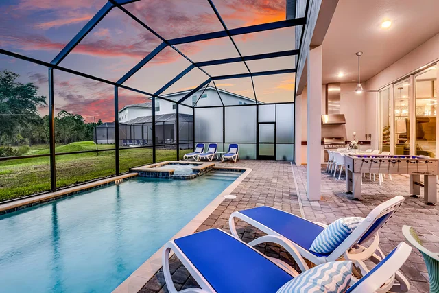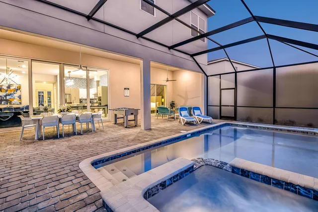 Solterra Resort is a sprawling 4-acre gated vacation community in Davenport, Florida, featuring a resort-style pool with waterslide, lazy river, spa, clubhouse, fitness center, and sports courts—perfect for families seeking all-inclusive relaxation and recreation just minutes from Disney World and Orlando theme parks.