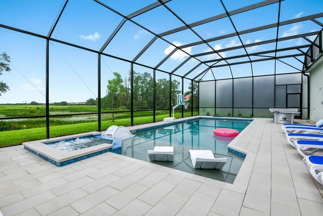 Dive into Solterra Resort's lazy river, waterslide, and zero-entry pool at the grand clubhouse, where families splash endlessly amid cabanas, sports courts, and a poolside café. Perfect for kids and parents seeking non-stop Orlando vacation fun without leaving the gated paradise.[1][2][3]