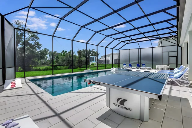 Discover Solterra Resort's ultimate family playground, featuring a zero-entry pool, thrilling waterslide, lazy river, and jacuzzi amid lush Orlando vibes just minutes from Disney. Families and fun-seekers will love the clubhouse games, sports courts, and poolside café for endless vacation magic.