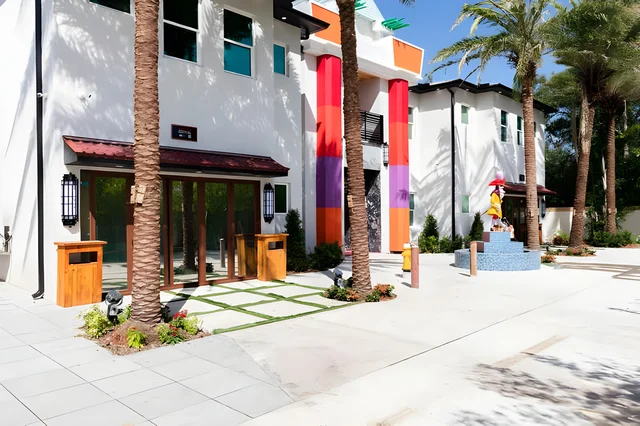 Unwind in Solterra Resort's lazy river, a lush, winding oasis perfect for effortless floating amid tropical vibes, just minutes from Disney. Families and thrill-seekers alike will love the zero-entry pool, waterslide, and sports courts for endless fun.