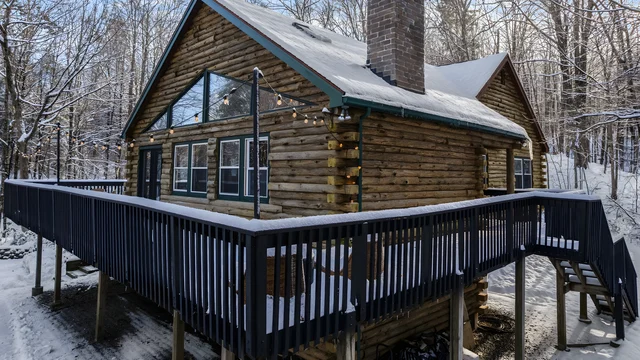 Wander Great Barrington Woods is a chic log cabin retreat tucked into the serene hills of the Berkshires.