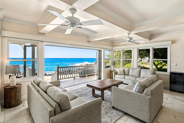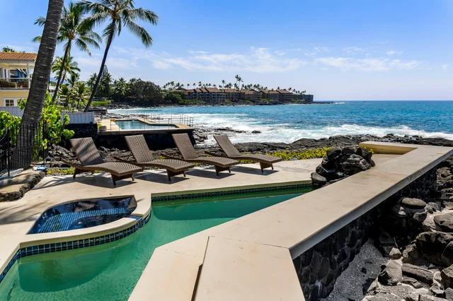 Wander Kailua Kona Manor sits directly above the shoreline, offering panoramic ocean views, a private pool and spa, and lanai spaces made for dolphin watching at sunrise.