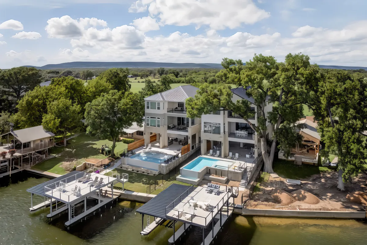 Wander Kingsland Villa is an exquisite lakeside retreat offering direct lake access and a private boat dock, perfect for unparalleled aquatic adventures.