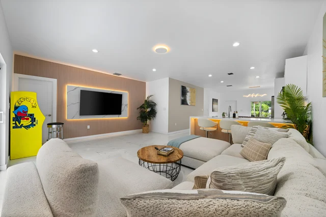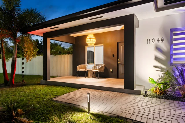 Wander Miami Groves features a beautiful outdoor pool and hot tub, creating the perfect setting for relaxation and entertainment.