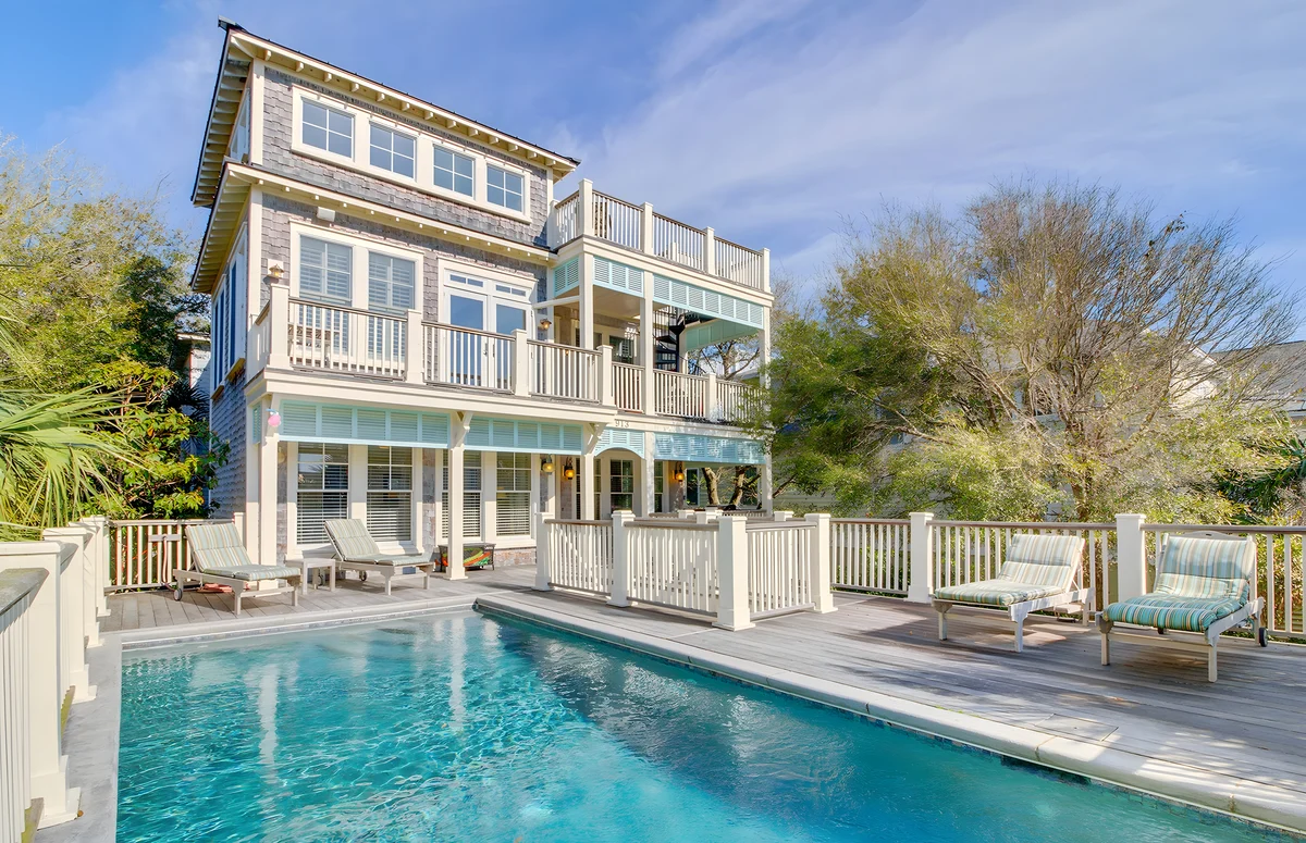 Wander Mount Pleasant Tides is a seven-bedroom Isle of Palms retreat just one block from the beach.