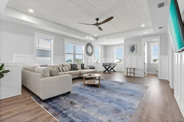 Located just one block from the sugar-white sands and emerald waters of Panama City Beach, this home offers quick access to a private beach entry and is minutes from Pier Park, dining, shopping, and entertainment. The area blends laid-back coastal living with vibrant attractions ideal for families and groups.