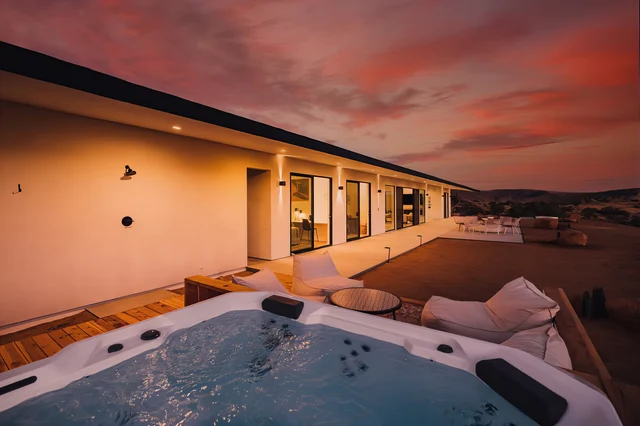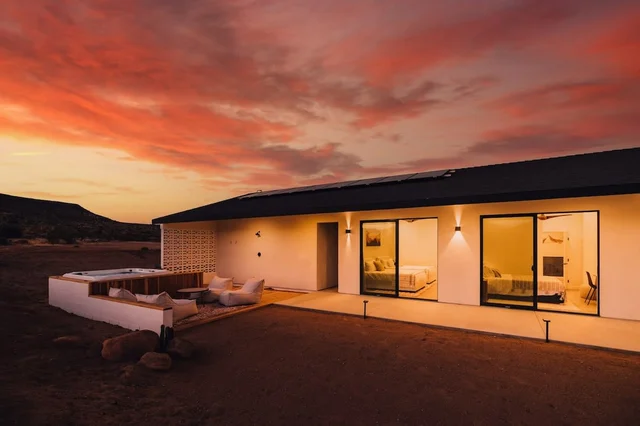 Experience desert luxury at Junipero House, an eclectic modern retreat in Yucca Valley near Joshua Tree National Park, featuring a private pool, hot tub, and stunning stargazing opportunities. Perfect for those seeking a stylish escape with nature and relaxation.