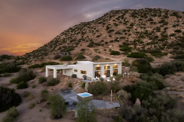Wander Pioneertown Sawtooth Ridge is a private desert retreat spanning two newly built homes across five secluded acres, designed for elevated group escapes.