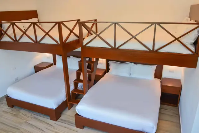 2 queen bunk beds, 2 queen beds