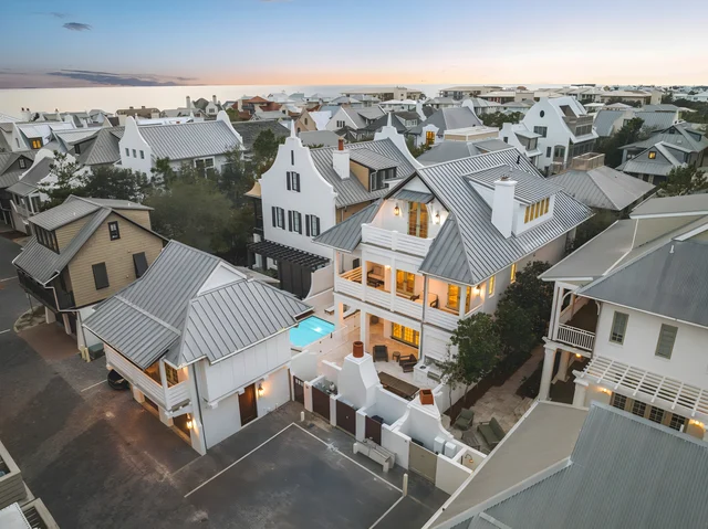 Wander Rosemary Dunes Haven is a refined coastal retreat in the heart of Rosemary Beach, featuring a private pool with a waterfall, multiple outdoor living spaces, and a charming carriage house ideal for families or groups seeking comfort, space, and effortless beachside living just steps from the sand.