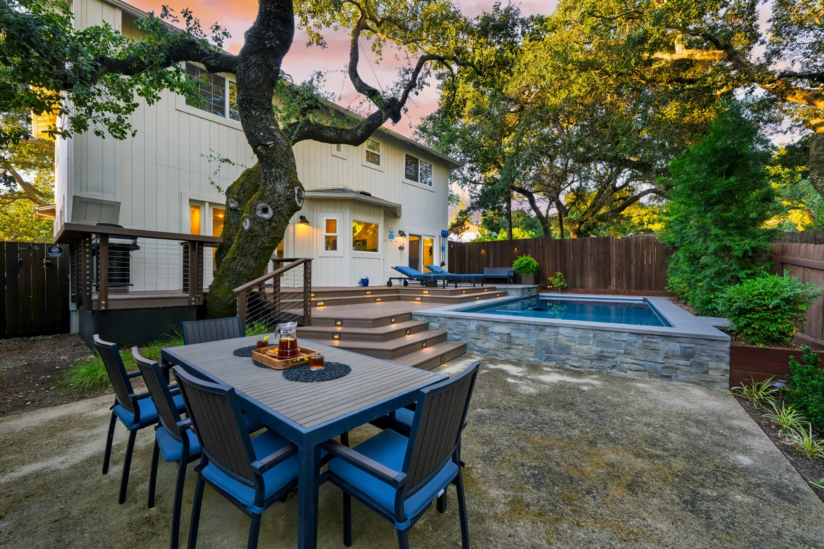 Wander Sonoma Terrace is a serene poolside sanctuary nestled beneath heritage oaks in the heart of wine country.