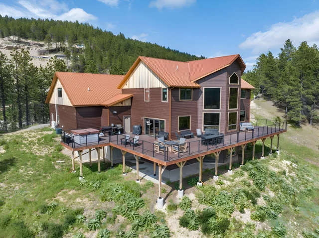 Wander Sturgis Gulch is an exquisite luxury lodge, offering breathtaking mountain views from its expansive wrap-around deck with a hot tub, BBQ area, and fire pit.